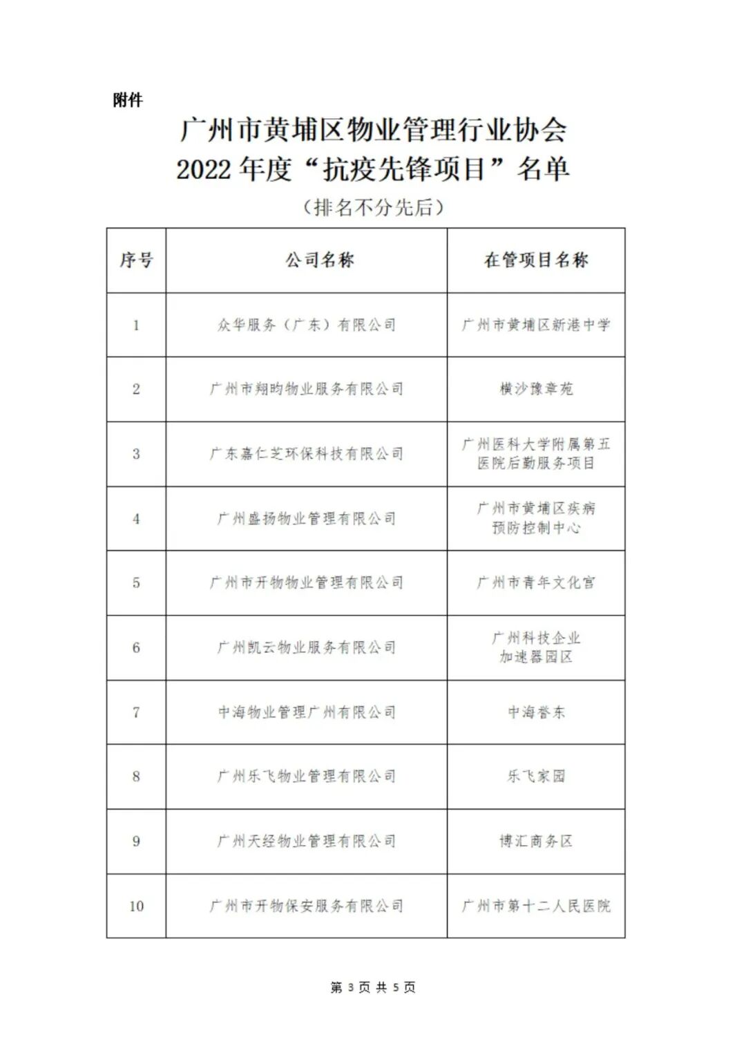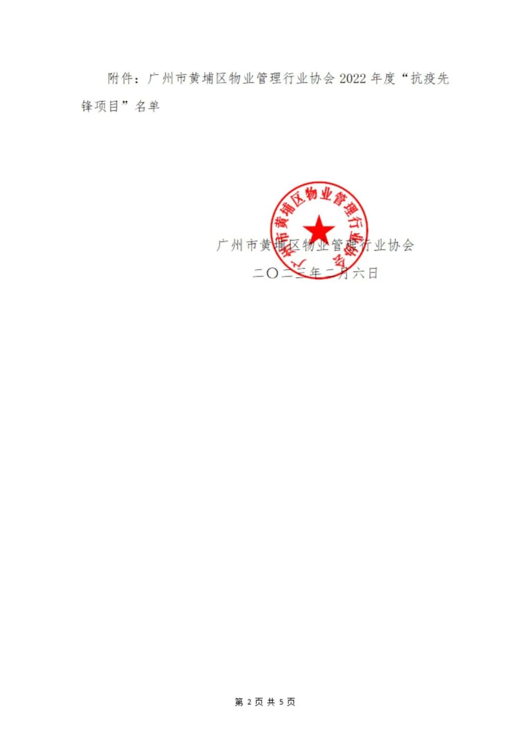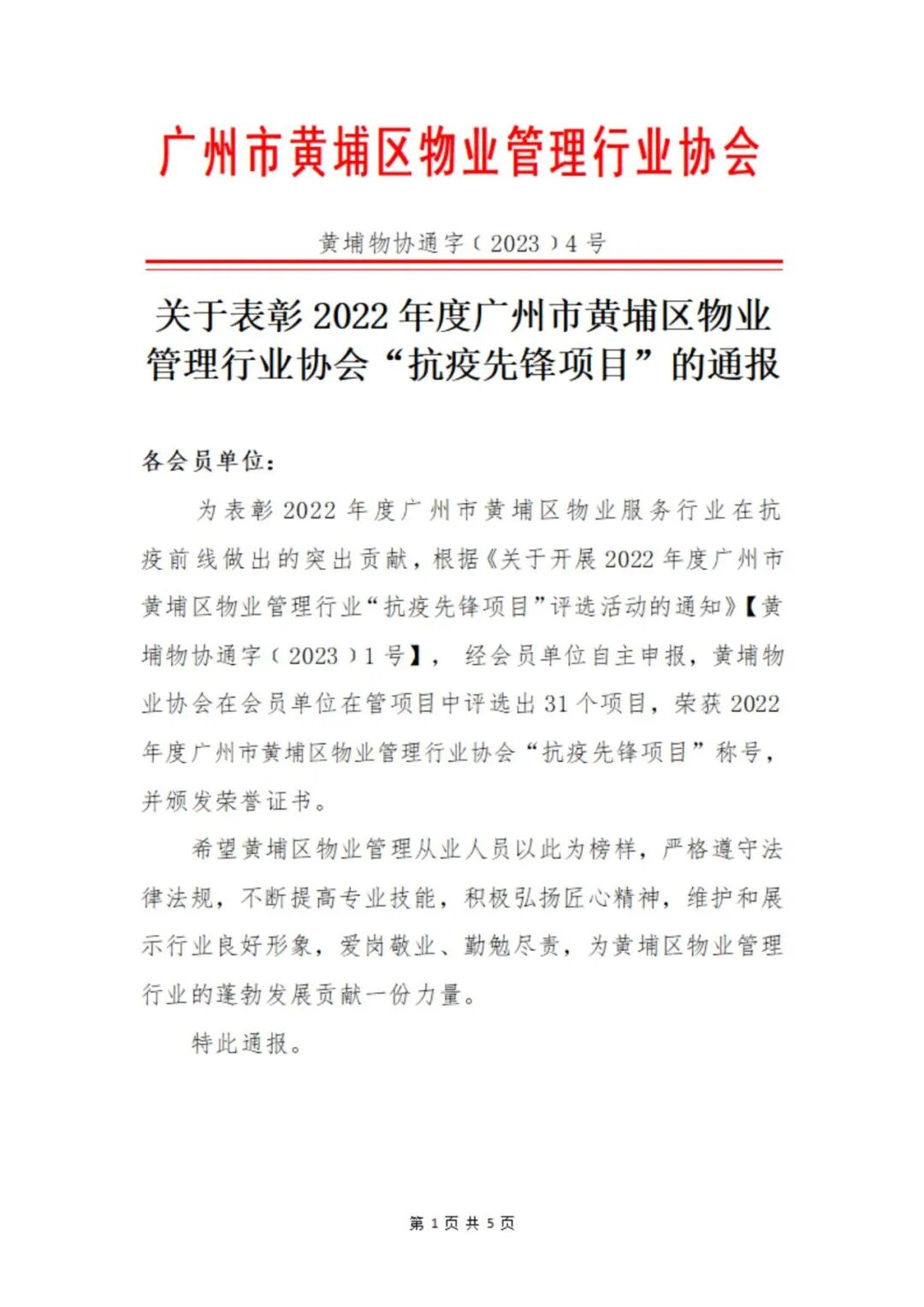 关于表彰2022年度广州市黄埔区物业管理行业协会“抗疫先锋项目”的通报